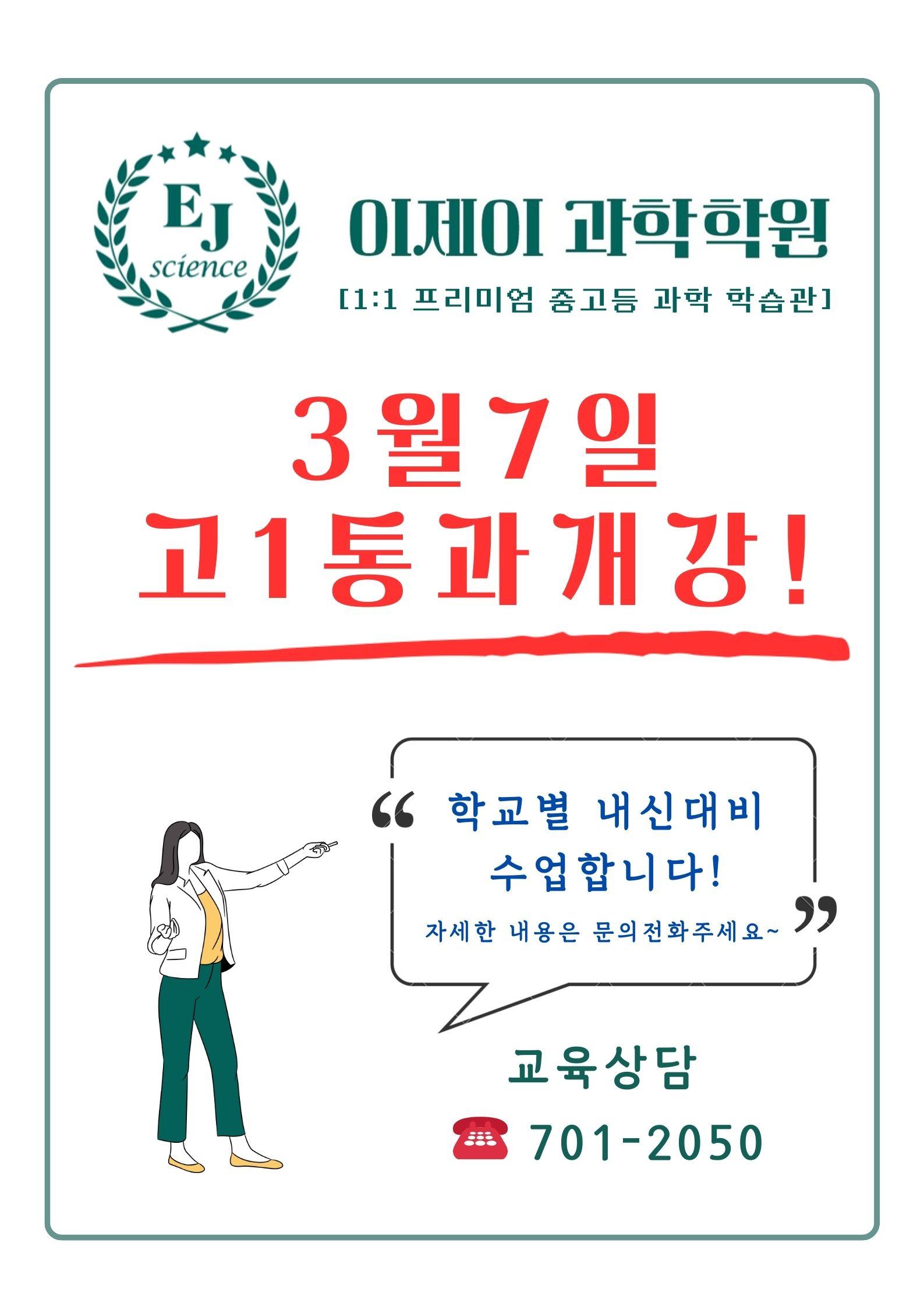 ️ ⭐️ EJ 이제이 과학학원입니다~ 아이를 믿고 맡겨주시는 우리 학부모님들께 늘 진심으로 감사드립니다. 🍀 3월 고1 통합과학 내신대비 수업 안내드립니다! 새로운 공간에서 변함없는 마음으로 아이들과 함께하겠습니다! 궁금하신 내용은 언제든 문의전화주세요~^^ 교육상담 : 051-701-2050 해운대 과학맛집! ★EJ 이제이 과학학원★ https://m.blog.naver.com/ej_science/224207062318