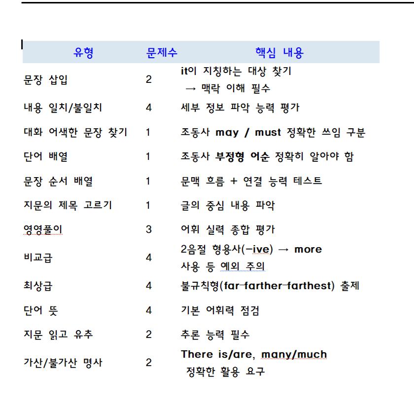 이수중학교 1학년 영어시험분석