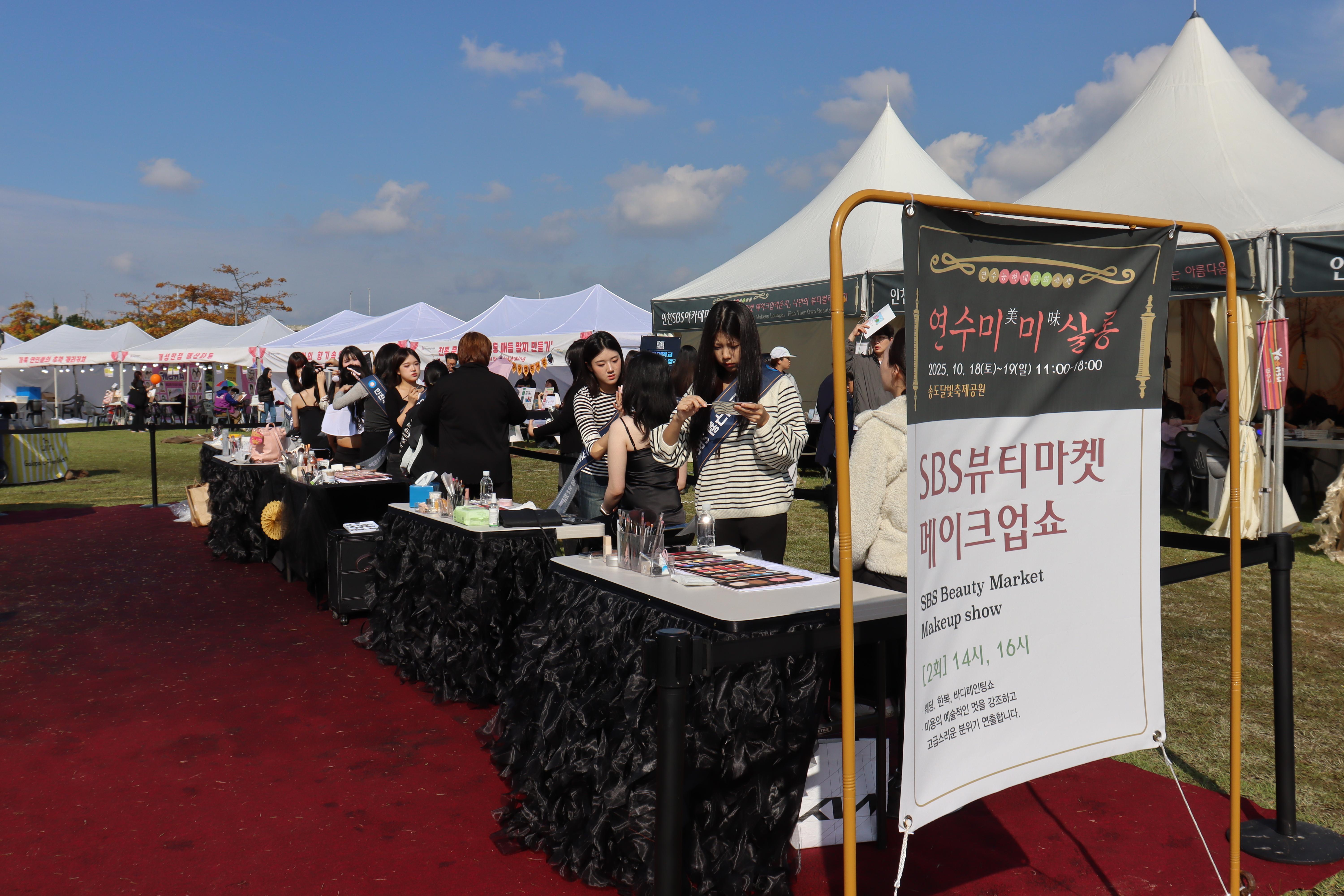 안녕하세요, 구월SBS아카데미미용학원입니다 지난 2025년 10월 18일(금)과 19일(토) 연수구청에서 주최하는 송도달빛축제공원에서 열린 ‘능허대축제’에 인천 미용학원 중 저희 구월SBS아카데미미용학원이 참여하여 다양한 메이크업&헤어 쇼 시연과 체험 부스 운영을 진행했습니다! 현장에서 진행된 뷰티 쇼 시연 무대에서는 수강생들이 직접 참여하여 화려한 무대 메이크업과 헤어 스타일링을 선보였는데요. 그동안 갈고닦은 기술력과 감각을 마음껏 보여주는 뜻깊은 시간이었습니다👏 또 부스에서는 아이 메이크업 체험, 젤네일 풀컬러 체험, 헤어 스타일링 체험, 눈썹 정리 등 다양한 뷰티 체험 프로그램이 진행되어 많은 분들이 직접 미용 서비스를 경험하고 즐길 수 있었습니다✨ 축제 내내 부스를 찾아주신 많은 분들 덕분에 현장은 웃음과 열정으로 가득했고 우리 수강생들에게도 현장 실무 경험을 쌓을 수 있는 소중한 시간이 되었답니다💕 앞으로도 구월SBS아카데미미용학원은 이처럼 지역 축제와 문화행사에 꾸준히 참여하여 수강생들이 현장에서 실력을 발휘하고 실무 감각을 익힐 수 있는 기회를 지속적으로 만들어 나가겠습니다.