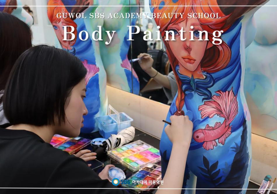 안녕하세요! 구월SBS아카데미미용학원입니다. 요즘 구월캠퍼스에서는 바디페인팅 수업이 한참인데요~ 바디페인팅은 사람의 몸을 하나의 캔버스처럼 활용해 페이스&바디 전용 물감으로 그림이나 디자인을 표현하는 아트 메이크업 분야입니다. 피부 위에 색채, 패턴, 입체감, 스토리를 담아 작품을 완성하며, 예술성과 창의성이 매우 중요한 장르입니다. 주로 공연, 광고, 행사, 대회, 화보 촬영, 축제, 특수분장, 입시 작품 등에 활용되며 단순히 그림을 그리는 것을 넘어 인체의 곡선과 움직임까지 고려해 디자인합니다. <바디페인팅의 특징> ·몸의 라인을 활용한 입체적 표현 가능 ·일반 캔버스와 다른 독창적인 작품 제작 ·컬러 감각과 드로잉 실력 향상 ·메이크업, 특수분장, 아트메이크업 분야로 확장 가능 ▶SBS아카데미미용학원 구월/부평/논현/서구/부천/김포/송도지점◀ T. 032-438-0816