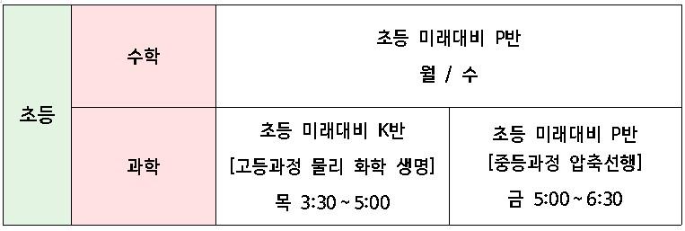 키아즈마 초등/ 중등/고등부 시간표