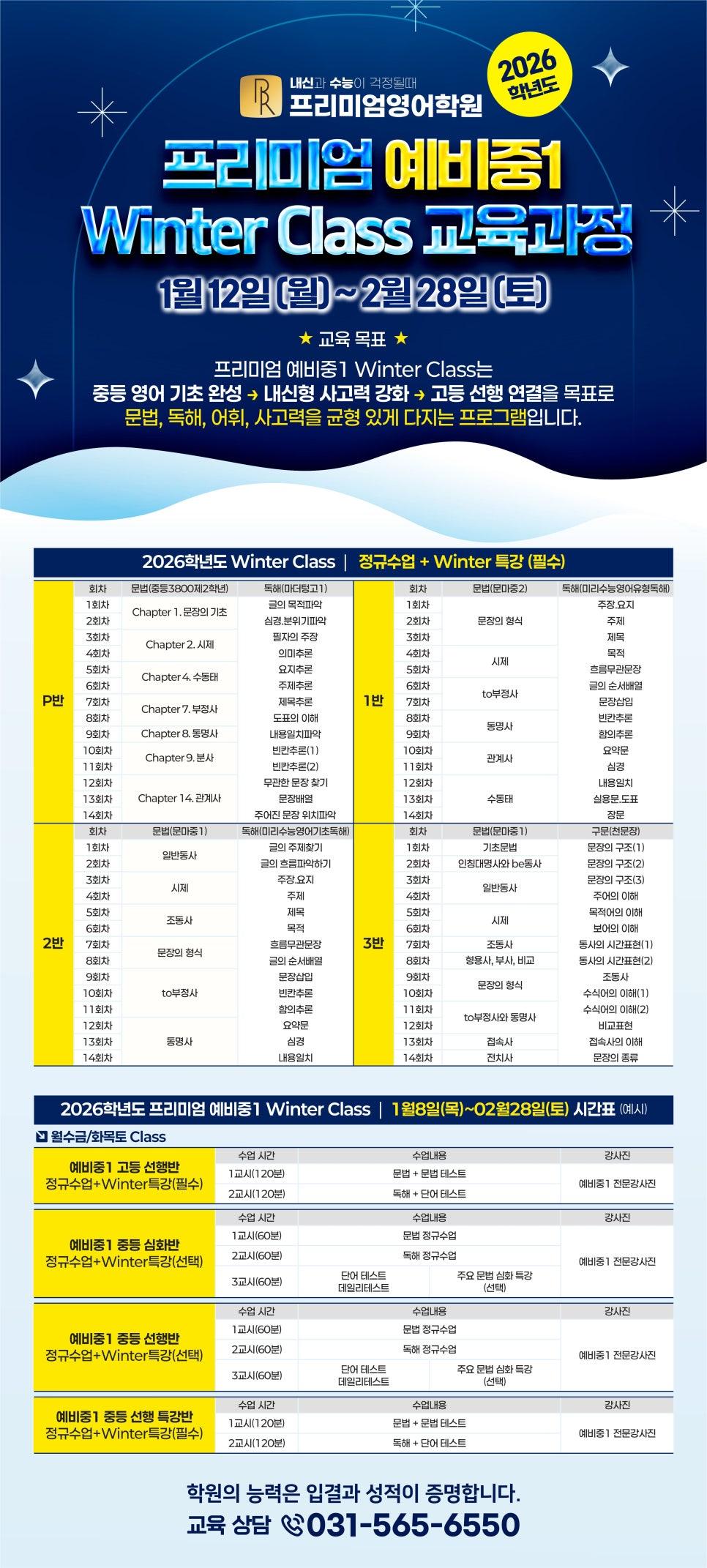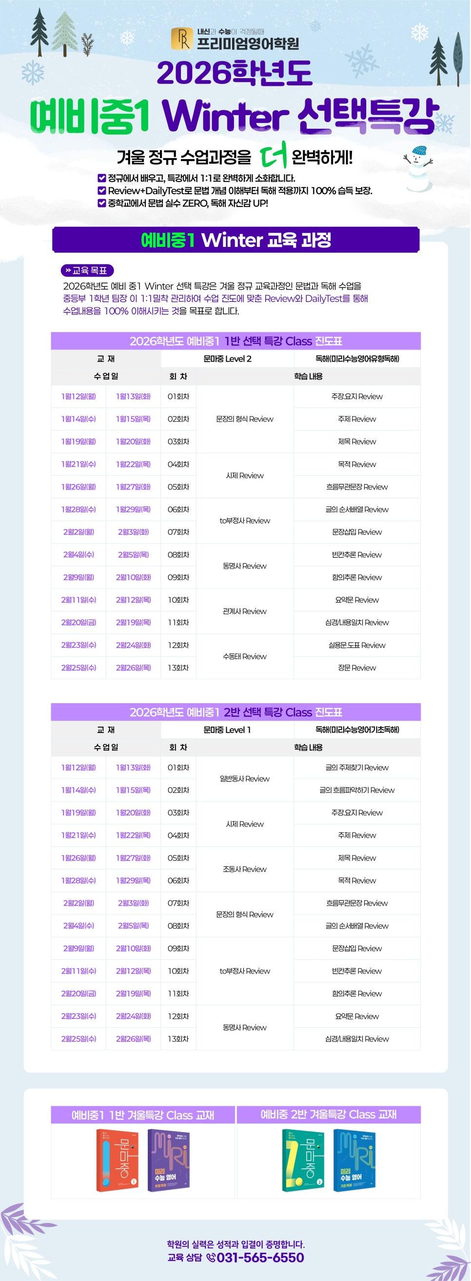 [프리미엄학원 중등관]2026학년도 예비중1 프리미엄 영어 Winter Class 개강