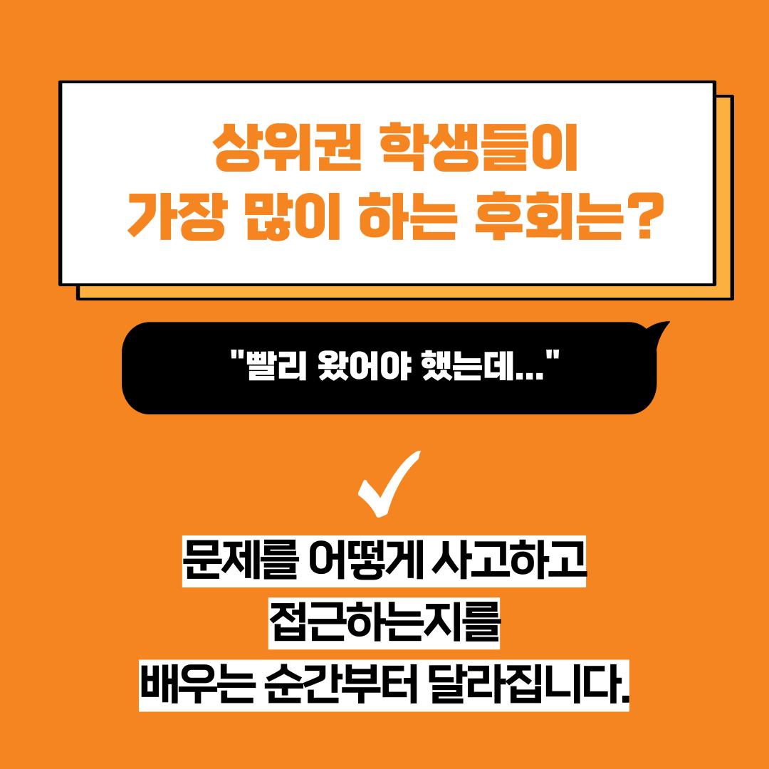 상위권 학생들이 가장 많이 하는 후회는 단 하나입니다. 👉 “빨리 왔어야 했는데…” 수학 성적은 단순히 문제를 많이 푸는 것에서 나오는 것이 아니라, 문제를 어떻게 사고하고 접근하는지를 배우는 순간부터 달라집니다. 송파에서 사고 과정을 전수하는 방식으로 수학적 사고력과 성적을 동시에 키울 수 있는 학원, 지금 바로 시작하세요.