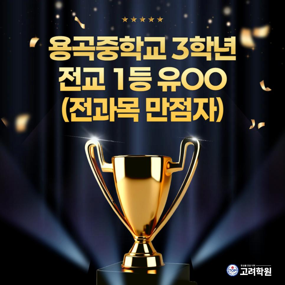 25년 1학기 중간고사 용곡중3 전교 1등(전과목 만점자) 배출!