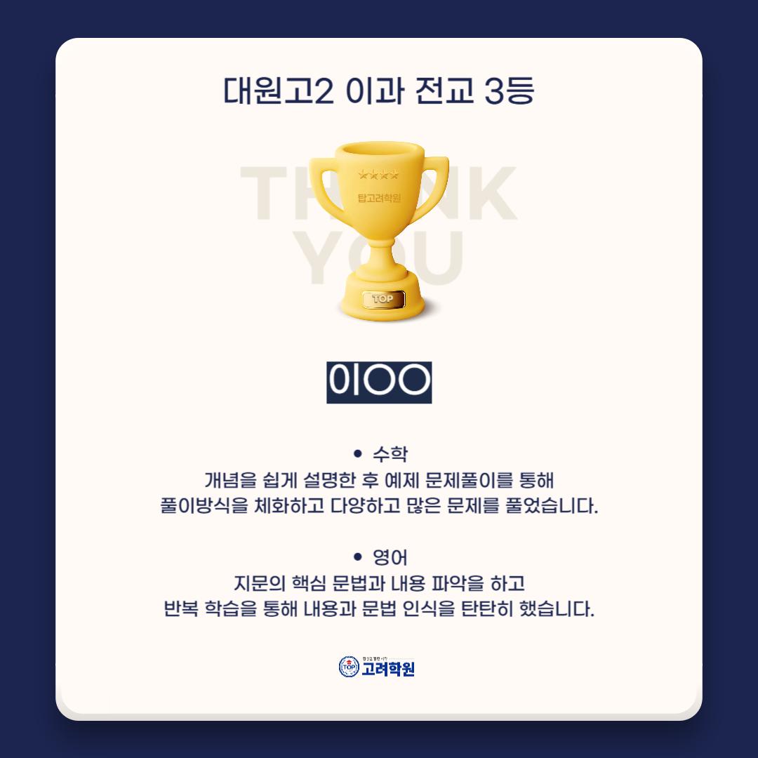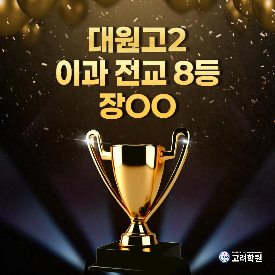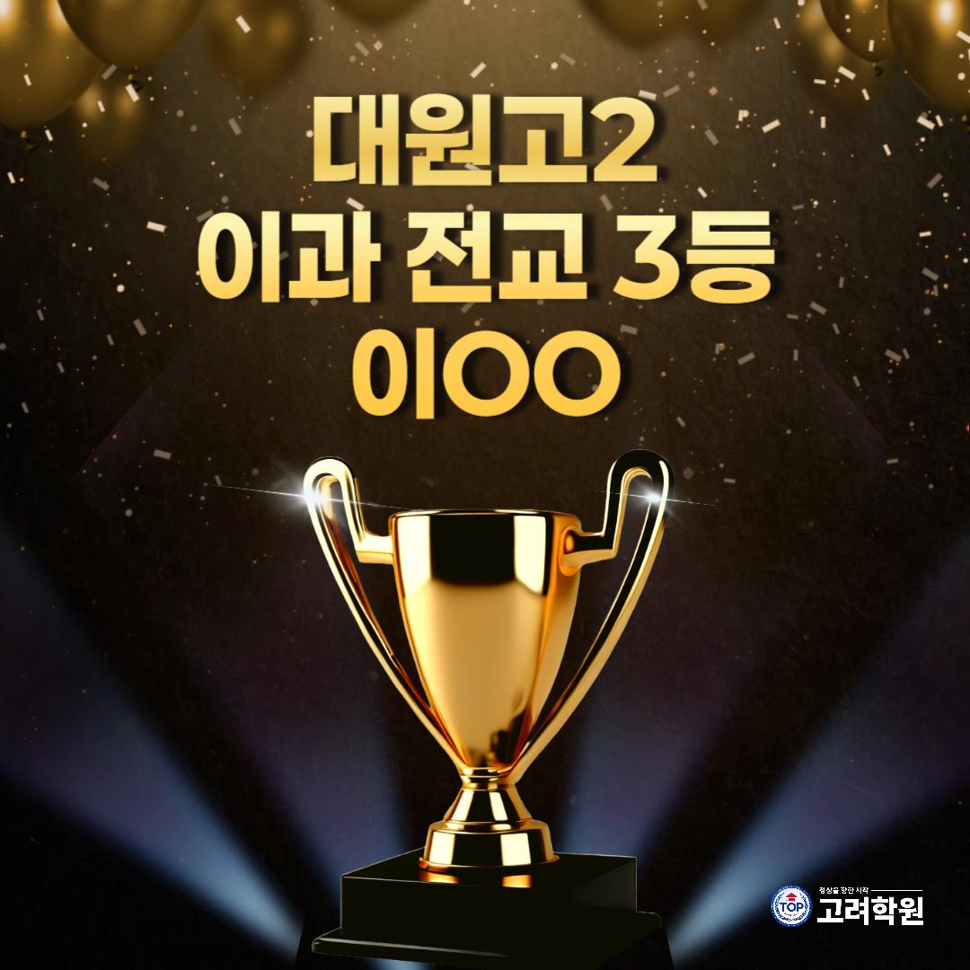 25년 1학기 중간고사 대원고2 이과 전교 3등, 8등 배출!