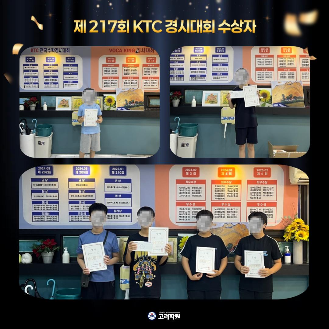 🎉 #수상소식 | #탑고려학원 x #KTC전국수학경시대회 🎉 25년 8월 7~8일, #중곡동수학학원 고려학원에서 열린 📘 제217회 KTC 전국수학경시대회 📘 👏 우리 고려학원 학생들이 ✨ 은상 2명, 동상 1명, 장려상 3명 ✨ 총 6명 수상의 쾌거를 이뤘습니다! 🎊 전국 기준으로도 우수한 수학 실력을 인정받은 우리 학생들 정말 자랑스럽습니다💙 👉 자세한 소식은 블로그에서 확인하세요! 🔗 https://blog.naver.com/kevin-t/223993875436 #광진구수학학원 #수학학력평가 #KTC수학경시대회 #초등수학 #중등수학 #고려학원