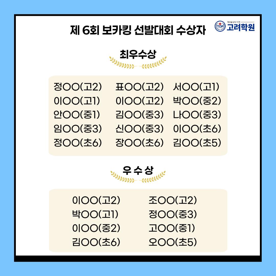 [중곡동 영어학원] 제6회 보카킹 선발대회 결과 안내
