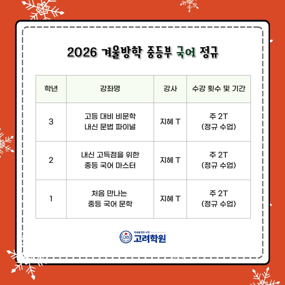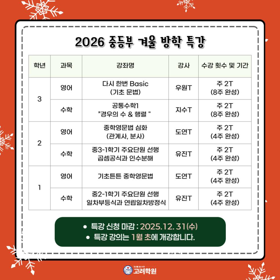❄️26년 중·고등부 겨울방학특강 모집 중❄️