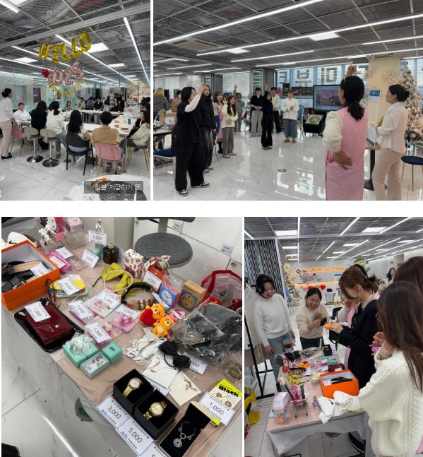안녕하세요. 부평SBS아카데미미용학원 입니다. 지난 2024년 12월 27일에 수강분들과 약속했던 2024년 부평SBS송년회가 진행되었습니다. 1부- 가지가지 플리마켓 바자회~!! 수강생분들께서 집에서 소장중인 물건들을 가져와 무료나눔을 하시기도 하고 교환하거나 저렴한 가격에 판매를 해보는 바자회를 진행하였습니다. 신발, 모자, 시계, 향수 등등 다양한 물품이 마련되어 보는 즐거움과 저렴한 가격에 득탬하는 즐거움을 동시에 느껴볼수 있어 반응이 뜨거웠답니다. 2부- 수강생분들과 함께하는 연말파티~!! 선생님들께서 준비한 음식을 나눠먹으며 오픈채팅방을 통한 게임 등을 진행하였습니다. 알차게 준비한 게임을 통해 선물까지 득탬하는 즐거운 시간이었답니다. 2024년 부평SBS 송년회 진행 현장~!! 함께 확인해 보세요~^^ 문의 전화 : 032 - 501 - 2977
