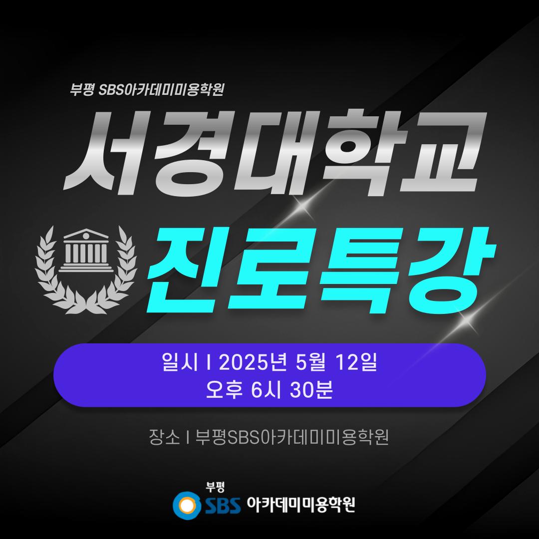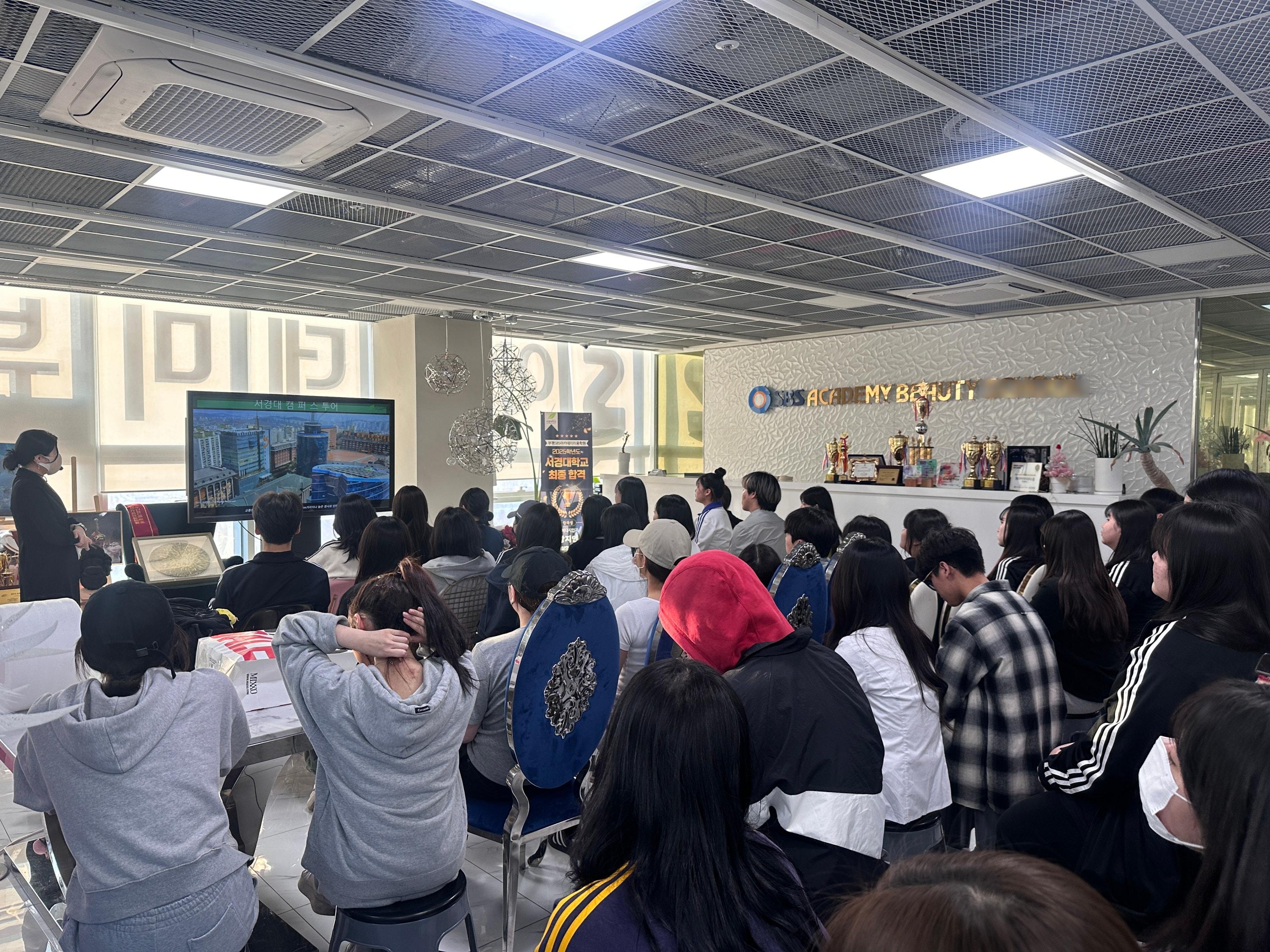 안녕하세요. 부평SBS아카데미미용학원입니다. 오늘은 서경대학교 교수님께서 직접 방문하셔서 부평캠퍼스 수강생분들께 학교의 모든것을 알려주셨답니다. 학교 소개부터~ 학과에 대한 설명들과 전형에 대해 자세하게 설명해주셨어요! 서경대학교에 평소 관심이 많은 수강생들이 많아서 고3 수강생뿐만 아니라 고1, 고2 수강생분들께서도 많이 참석하셨고 엄청난 집중력으로 특강을 들었답니다! 매년 수강생분들의 진로 고민을 덜어드리고자 유명 대학교의 교수님들과의 질의 응답 시간을 갖을 수 있는 부평SBS아카데미미용학원~!!! 혼자 고민하지 마시고 문의 주세요^^ 교육 문의: 032 - 501 - 2977