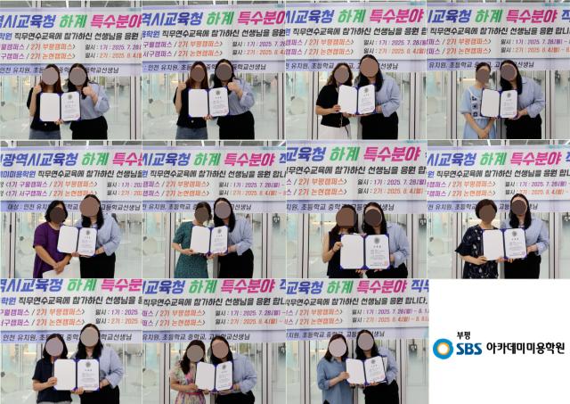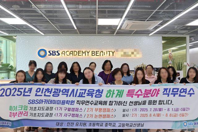 안녕하세요. 부평SBS아카데미미용학원입니다! 이번 부평SBS아카데미미용학원에서 2025 인천광역시교육청 하계 특수 분야 메이크업 직무 연수가 진행되었는데요! 8/4 ~ 8/8 까지 총 5일간 진행되었습니다. 메이크업의 제품과 기초 기술에 대한 교육과 실무에 관한 응용 기술을 배우고 자신의 얼굴에 직접 메이크업을 하는 수업으로 진행되었습니다~ 16분의 유치원, 초등학교, 중학교, 고등학교 선생님들께서 참여해 주셨습니다. 5일간의 메이크업 직무 연수를 들으시고 모두 수료증과 이수증을 받아가셨답니다! 미용의 경제 발전에 이바지하기 위해 더욱 노력하는 부평SBS아카데미미용학원이 되겠습니다~! 교육문의: 032 - 501 - 2977