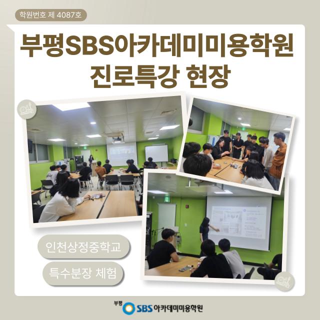 안녕하세요! 부평SBS아카데미미용학원입니다! 인천광역시청소년수련관에서 진로특강이 진행되었는데요! 인천상정중학교 학생과 함께 특수분장 진로체험을 진행하였습니다💙 아이들의 열정 넘치는 모습과 멋진 완성 작품! 아이들이 자신의 꿈에 한 발짝 다가갈 수 있는 기회를 선사했답니다! 미용의 꿈을 이룰 수 있도록 체계적인 교육을 진행하는 교육기관에서 미용의 길을 걸어보세요! 문의) 032-501-2977