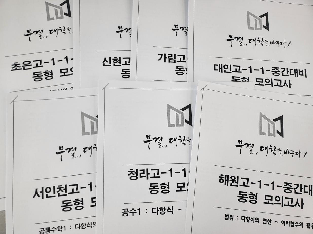 청라수학학원 무결수학학원에서 4/21(월)~4/22(화) 이틀 간 학교별 맞춤형 동형 모의고사를 배포합니다! 대상 학교 4/21: 서인천고, 대인고, 가림고, 신현고 4/22: 청라고, 초은고, 해원고 특징 - 최근 3개년 기출 분석 기반 - 학교별 출제 유형과 난이도 반영 - 학교별 100부 한정 배포 - 블로그에 해설 순차 업로드 예정 수령 방법 - 등교 시간에 맞춰 학교 앞 직접 배포 - 미수령 시 학원 방문 상담 후 요청시 제공 상세 내용 : https://blog.naver.com/mkedu0501/223832763053
