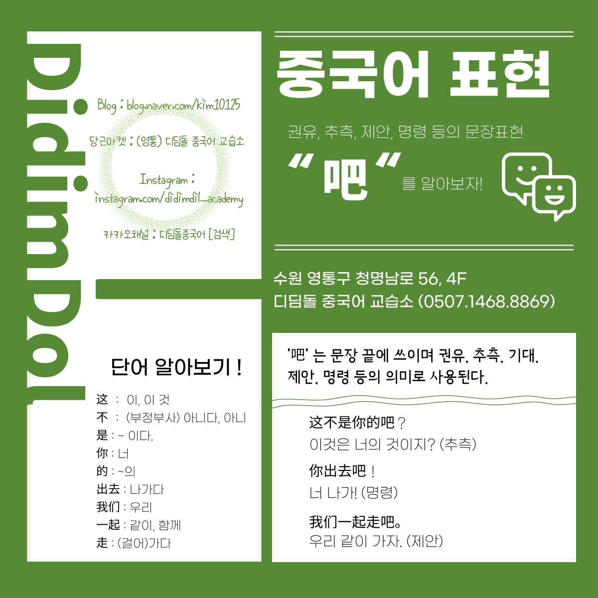 수원중국어[디딤돌중국어] : 짧은 문법 "吧"