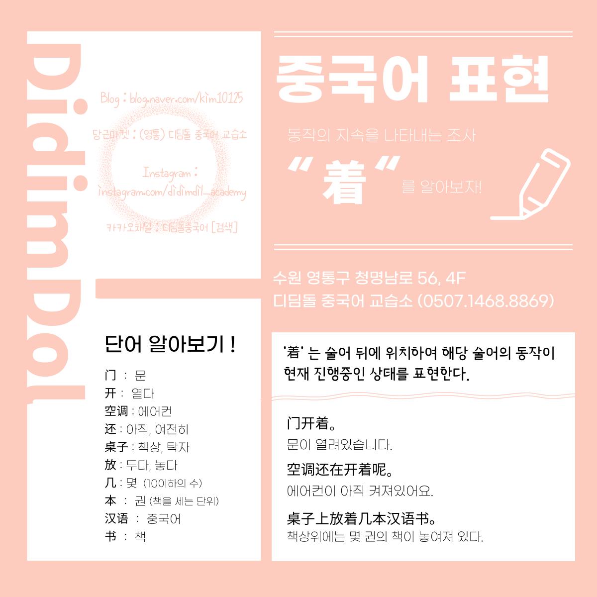 Blog : blog.naver.com/kim10125 당근마켓 : (영통) 디딤돌 중국어 교습소 [◁] Instagram : instagram.com/didimdil_academy 카카오채널 : 디딤돌중국어 [🔍] ☎ 0507. 1468 . 8869