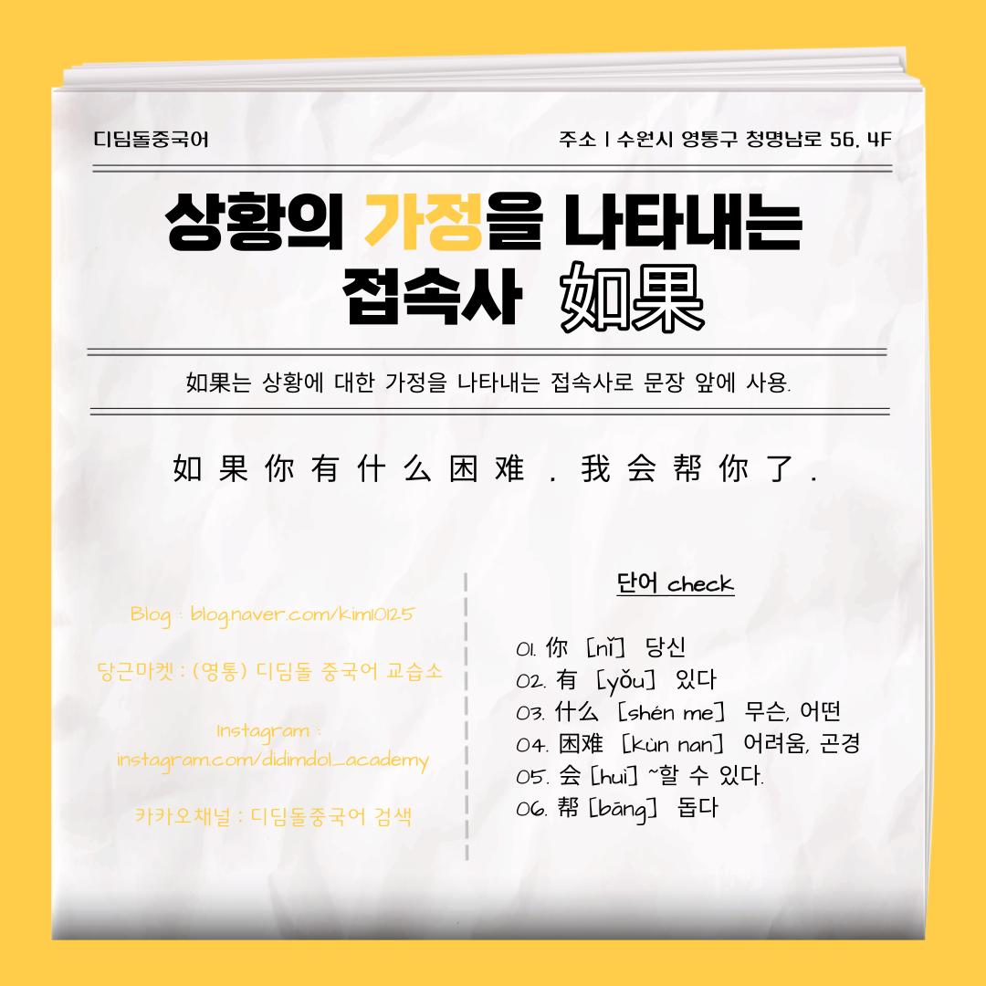 [수원 중국어]_디딤돌중국어 "짧은 문법 XIII" : 如果