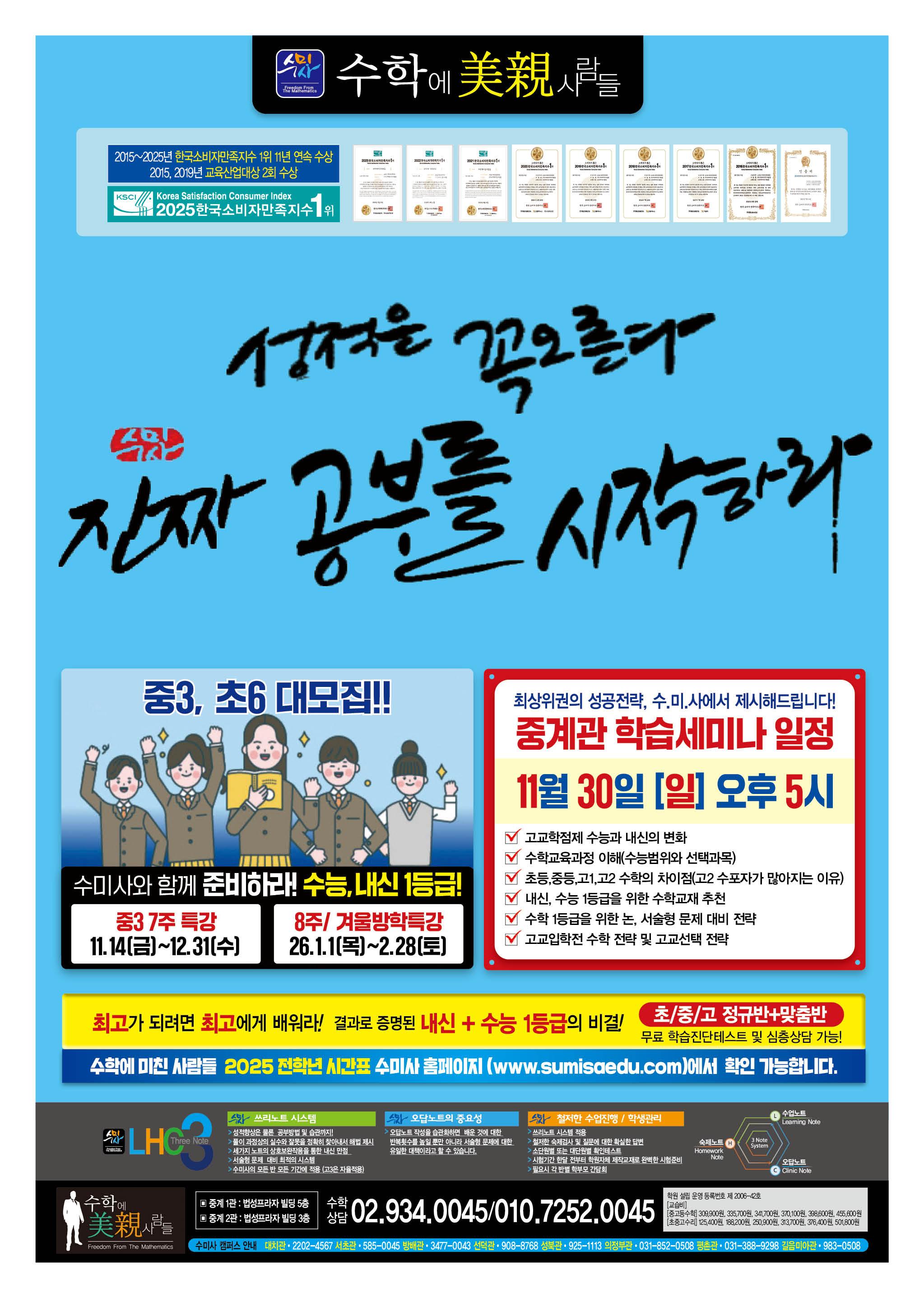 수미사 중계관] 은행사거리 수학학원 겨울방학 특강안내