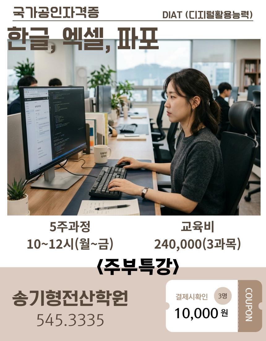 "나도 이제 컴퓨터 박사!" 주부님들을 위한 DIAT 자격증 5주 마스터 특강 안내