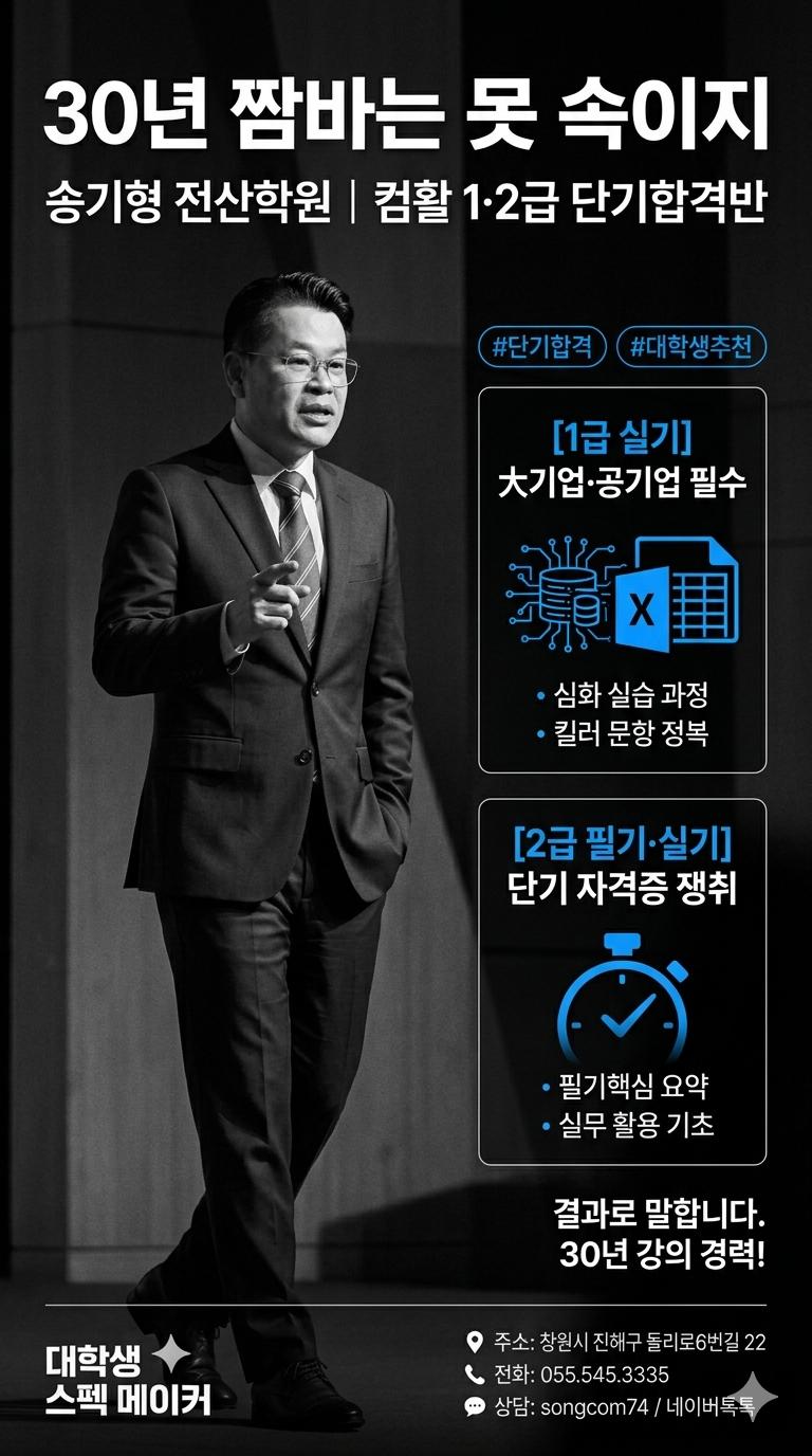 [공지] "30년 짬바는 못 속이지" 5월 송기형 전산학원 컴활 1·2급 단기합격반 개강!
