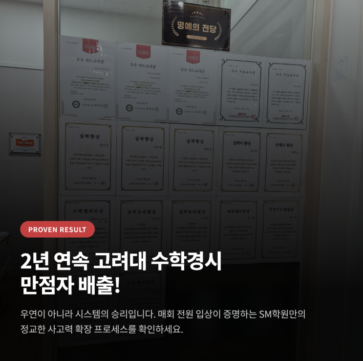 "사고력 수학을 오래 배웠는데, 왜 문장제 문제 앞에서는 입을 닫을까요?" 안녕하세요, 영천동수학학원 기탄사고력교실 SM학원 양선미 원장입니다. 최근 학부모님들과 상담을 나누다 보면 공통적인 갈증이 느껴지곤 합니다. 학원은 오래 보냈는데 서술형은 손도 못 대요 문제집은 몇 권이나 풀었는데 조금만 문장이 길어지면 별표부터 칩니다 같은 깊은 고민들이지요 대치동과 분당 소마에서 4년간 대표 강사로 활동하며 고려대 수학경시 만점자와 HME 전원 입상이라는 성과를 만들어낸 제가 보기에, 이건 수학적 '개념'과 '문해력'의 연결 고리가 끊어져 있기 때문입니다 기탄사고력교실 SM학원은 단순히 진도만....... <img src="https://blogthumb.pstatic.net/MjAyNjAyMTdfMTMx/MDAxNzcxMzIzNjMxOTU3.nbbZHg7MuIGvg1bdUVHYYVOVcYoTtPCyzPajhW_Zz7Eg.irly9Ks4IFEmvApzslQlqXvRz0mvj8N7up8lr16qZGcg.PNG/carousel-page-05.png?type=s3" />