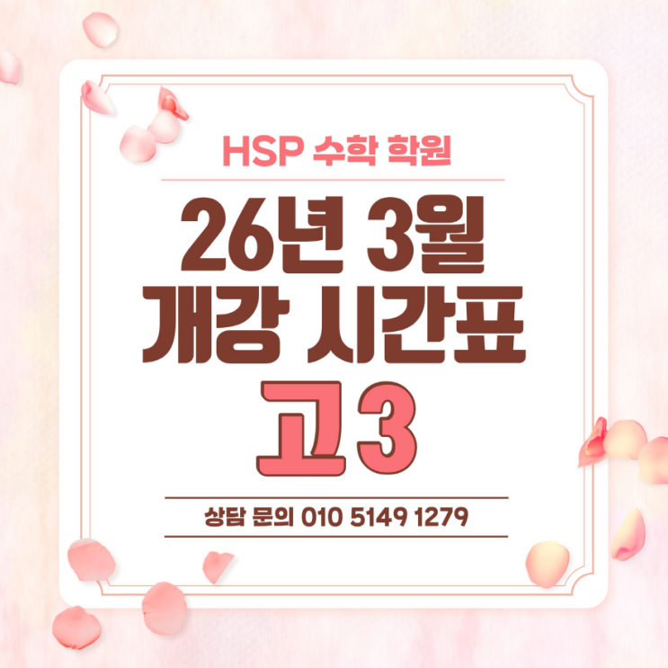 안녕하세요 HSP수학학원입니다 동탄 전 지역 차량 운행 가능 합니다. 26년 수시 + 정시 입결 의대 9명 (정시 5명 + 수시 4명) 약대 1명 (수시 1명) 서울대 8명 (정시 7명 + 수시 1명) 연고대 6명 (정시 3명 + 수시 3명) (중복없음) 압도적인 결과의 증명 의대 9명 / 서울대 8명 / 약대 1명 진학 실력은 결국 결과로 말합니다. 최상위권이 선택한 교육 정상을 목표로 한 선택 그 품격있는 결과를 경험 하십시오. HSP 고3 시간표 ▶ 시간표는 학원 사정에 따라 변동 될 수 있습니다. 26년 정시 입결 [의대] [서울대] [연고대] 26년 수시 입결 [의대] [약대] [연고대] "1등을 위한 수학, 1%를 위한 교육" 심화 학습 수학적 사고 확장 경쟁....... <img src="https://blogthumb.pstatic.net/MjAyNjAyMjBfMjMw/MDAxNzcxNTg2MjY2Njc4.PUSrxmgakHJiWJOeDDH5KZN_OyXG_8ti61OdHbtMtCYg.N-fHdhj5EVsZOq6EdN_k1jJo3T4owF6gSduATC0196Ig.PNG/image.png?type=s3" />