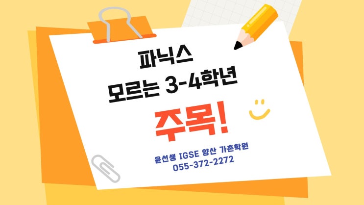 안녕하세요 . 양산 가양초, 가촌초, 가남초 파닉스 전문 학원 양산 가촌 IGSE 학원 입니다. "3~4학년인데 아직 파닉스를 몰라요" 양산 가양초,가촌초,가남초 파닉스 모르는 3~4학년부모 상담에서 정말 자주 듣는 말입니다. 결론부터 말씀 드리면 아직 늦지 않았습니다. 하지만 , 지금은 방향이 중요 합니다. Olivia의 사례로 본 '윤선생 파닉스'의 비결 2024년 . 초등학교 3학년이었던 Olivia의 경우를 소개 하고자 합니다. 타 학습으로 영어 공부를 계속 해 왔었지만 Olivia의 첫 레벨 테스트의 결과는 다시 파닉스 교재로 시작하게 되었습니다. 알파벳과 자음의 소리는 워크북으로 복습하고, 메인 학습은 단모음 부터 시작....... <img src="https://blogthumb.pstatic.net/MjAyNjAyMDJfMTI3/MDAxNzcwMDM1MDE4ODc4.hQnhaXuCKwgxL36KF3CzmFSE9pevAObsbG9iNO1lgtAg.pMrA1ljPGEk-CNakyWsHnezUnj7odnpKUBT_OyNSthog.JPEG/%C1%A6%B8%F1%C0%BB_%C0%D4%B7%C2%C7%D8%C1%D6%BC%BC%BF%E4._%2817%29.jpg?type=s3" />