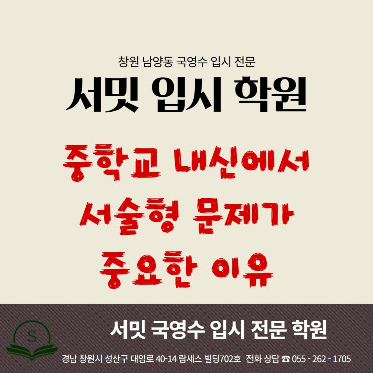 중학교 내신에서 서술형 문제가 중요한 이유 ― 점수 차이는 문제 수가 아니라 답안에서 만들어진다 중학교 시험을 준비하다 보면 학생이나 학부모 모두 비슷한 고민을 하게 됩니다. “객관식은 거의 맞히는데 왜 점수가 생각보다 안 나올까?” 이 질문의 답을 자세히 들여다보면, 대부분 서술형 문제에서 이유를 찾을 수 있습니다. 최근 중학교 내신 시험은 단순히 정답을 고르는 평가에서 벗어나, 학생이 얼마나 이해하고 설명할 수 있는지를 확인하는 방향으로 변화하고 있습니다. 이 변화의 중심에 바로 서술형 문제가 있습니다. 1. 서술형 문제는 점수 비중이 생각보다 크다 중학교 내신에서 서술형 문제는 보통 전체 점수의 20~40% 이상을....... <img src="https://blogthumb.pstatic.net/MjAyNjAyMDRfMTA4/MDAxNzcwMTc4MTAxNjA2.ksDGJ5bVzBeUdl_cr_jrdmDfoL4z3UFXTdlJsv2JolQg.D8W2hKUEmx8fEw9Sjagmqattgtas55wpDa8ipRenz0Ug.JPEG/%BC%AD%B9%D4_%C1%DF%B5%EE%BA%CE_%B8%F0%C1%FD_-_2026-02-04T130816.255.jpg?type=s3" />