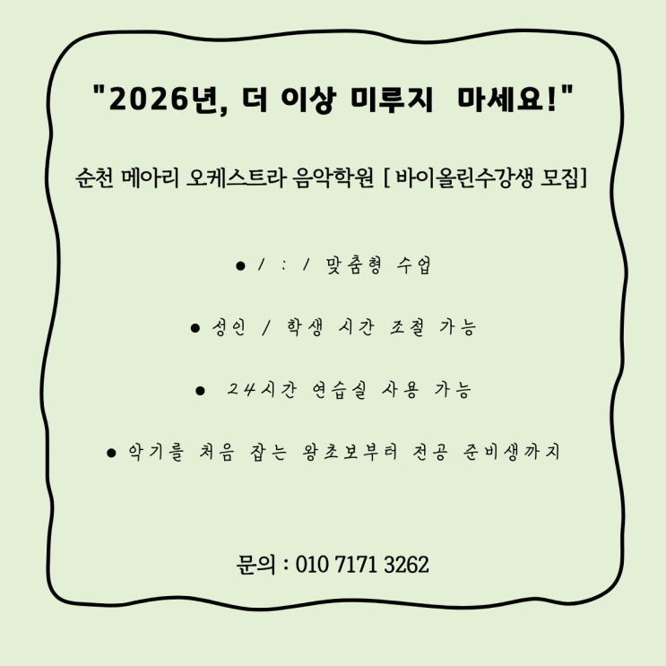 [ 순천 성인 바이올린 학원 ] 2026 새해 버킷 리스트 "바이올린" 도전기 순천 메아리 오케스트라 음악학원에서 시작하세요