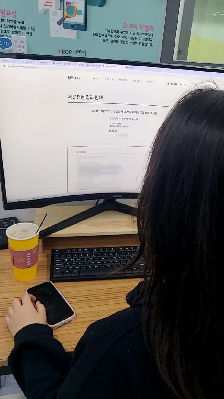학교 내신을 탄탄히 잡았더니, 삼성 DS 장학생 서류까지 통과했습니다 인천 특성화고(인천 마이스터고) 재학 중인 우리 학원 원생이 2026 삼성전자 DS부문 장학생 선발에서 서류전형 합격 소식을 전해왔습니다. 이번 전형은 서류 기반 평가가 중요한 만큼, “스펙 한 방”보다도 학교에서의 성실한 학업 성과와 과정이 설득력 있게 보이는지가 핵심이었습니다. 언어 학습 + 자격증 = ‘스펙’이 아니라 ‘내신 관리 전략’이었다 많은 학생들이 언어를 배우고 자격증을 따면 “취업 스펙”이라고만 생각합니다. 하지만 이번 원생은 출발점이 달랐습니다. “학교 내신을 안정적으로 올리기 위해 학교에서 배우는 언어와 자격증 과목을 ‘제대....... <img src="https://blogthumb.pstatic.net/MjAyNjAyMDRfMTQ3/MDAxNzcwMTg5ODMyMzgy.UB1d8kymHTXmuOaFaa9BW0FyyVnQwyC9hTrG-wsgkygg.mfvy2l54w40j6N1WQxIPGI8_PabfG8ckQO1Vk0dbcVYg.JPEG/KakaoTalk_20260204_161956075.jpg?type=s3" />