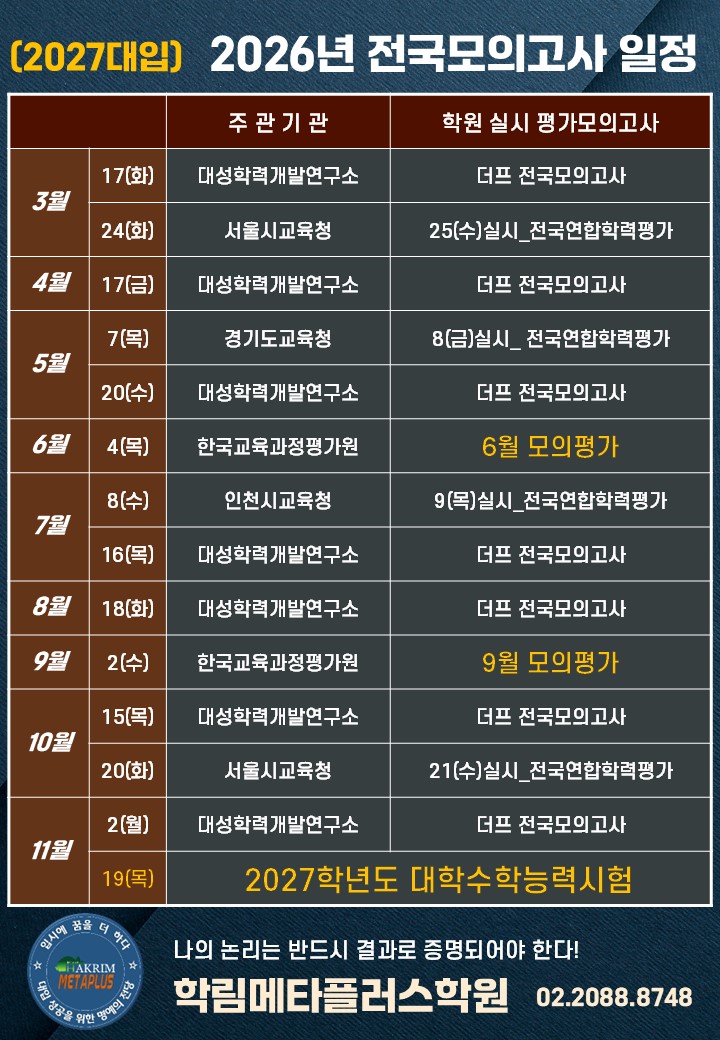 [2027대입] 2026년 평가모의고사 일정