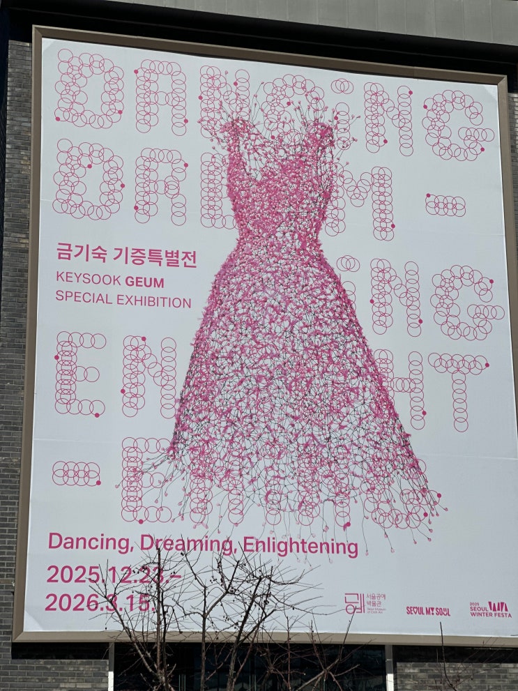 안녕하세요, 소미 쌤입니다. :) 요즈음 날씨가 참 좋아요. 소미 쌤이 느끼기에 전시 보러 가기 딱 좋은~ 아주 선선하고 따뜻한 봄이 다가와 준 것만 같네요. 소미 쌤은 최근 종로 안국역 근처를 지나다 보면 발길을 멈추게 하는 곳, 서울공예박물관에서 정말 환상적인 전시를 만나고 왔습니다. 해당 전시는 한국 패션 아트의 대가, 금기숙 작가님이 기증한 50여 점의 작품과 아카이브를 선보이는 ‘Dancing, Dreaming, Enlightening’전입니다. 패션과 예술의 경계를 허물다 전시장에 들어서자마자 마주하는 풍경은 우리가 흔히 아는 '옷'의 개념을 완전히 뒤바꿔 놓습니다. 작가는 천 대신 철사를 엮고, 그 위에 수만 개의 구슬....... <img src="https://blogthumb.pstatic.net/MjAyNjAyMTlfNyAg/MDAxNzcxNDk0NjkwODg4.r2KK4o3Yjuek0trhjGzNCBOvL1PowULEeEpXydM00k4g.W7gABYhCfbPYi2eiD1U1JOJfpdoZ1PIFgawvDSgMqocg.JPEG/KakaoTalk_20260219_150457997_23.jpg?type=s3" />