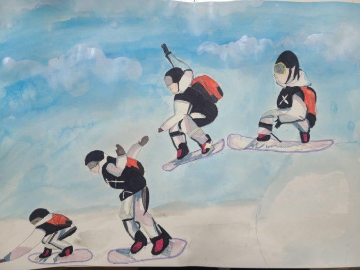 하남 아동미술 라온아트 [해칭기법으로 표현한 카메라 든 사람 그리기와 연속동작 그리기 스노우보드]