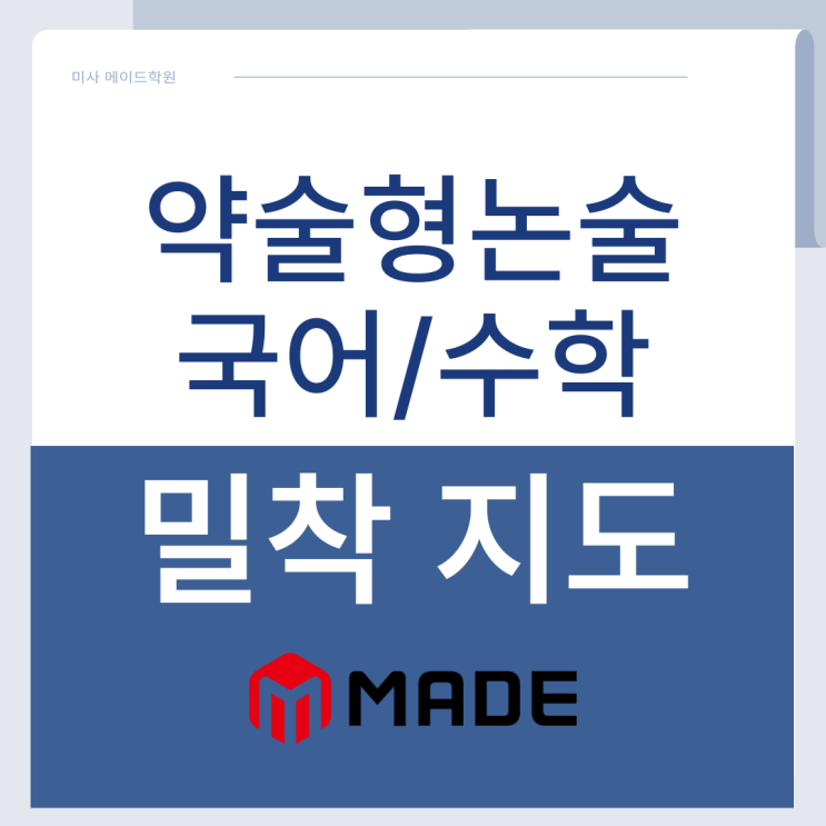 안녕하세요, 메이드학원입니다. 올해 수시를 위해 미사약술형논술 수업 찾으시는 분들이 많을 것으로 예상합니다. 28학년도 입시에서부터는 '판도가 뒤집힌다'라는 표현을 사용할 수 있을 정도로 대입에 변화가 대거 있을 예정입니다. 대학별고사로 선발하는 전형의 경우, 변화의 영향을 덜 받을 수는 있겠지만 학생들 처지에서는 최대한 재수의 가능성을 배제하고 준비하게 될 수밖에 없고요. 살얼음판같은 분위기에 무얼 하더라도 조심스럽게 접근하게 될 가능성이 큽니다. 무작정 수업을 듣고, 기출 문제 푸는 것보다 우리가 속해있는 대입을 이해하는 것이 우선입니다. 지금 바로 메이드학원과 함께 살펴보시죠. 28학년도 대입의 변....... <img src="https://blogthumb.pstatic.net/MjAyNjA0MDNfMyAg/MDAxNzc1MjI3Njg3MzYz.qyU1Deoz-hx9bGNkf27azFIwdOTWLy4Km_6ZNURmNbwg.V8GN3PwSOdvD_WQLGckPTbDuflX24MStcV4SZSWWQ7cg.PNG/001.png?type=s3" />