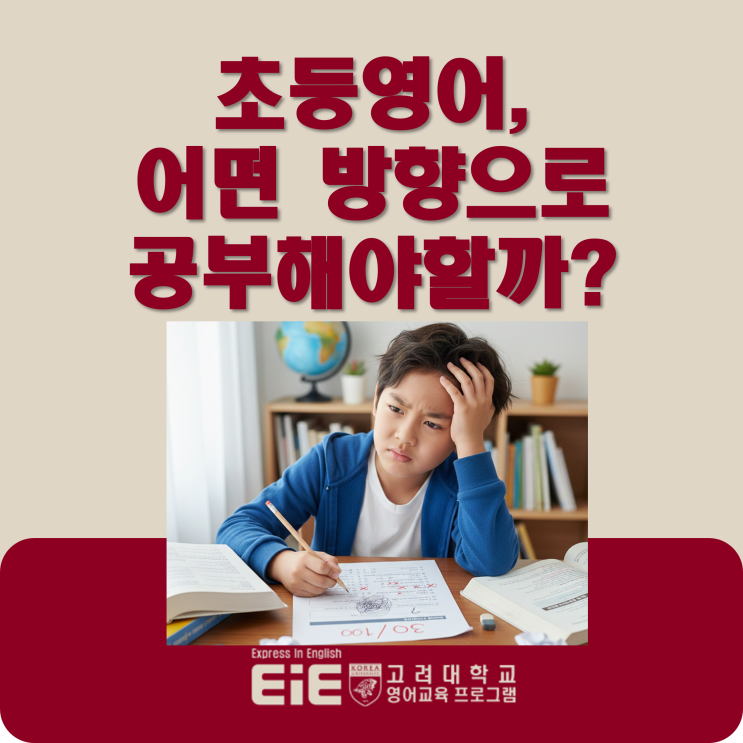 안녕하세요, EiE 고려대어학원 파주산내캠퍼스입니다. 오늘은 초등 영어에 대해서 말씀드리려고 해요. 아이들과 이야기 해보며, 영어 공부를 옆에서 지켜보다 보면 "선생님, 저 잘하고 있는거에요?"하고 고민을 털어놓는 친구들이 참 많아요 단어도 외우고 숙제도 꼬박꼬박 해오는데, 막상 영어책을 읽으려고 하면 어렵다고 하고, 자기 생각을 영어로 말하려면 쉽게 나오지 않는 경우도 많거든요. 초등 시기 영어는 점수보다도 영어를 편하게 받아들이는 힘과 기본기를 만드는 시기예요. 이때 어떤 방식으로 영어를 접하느냐에 따라 앞으로의 학습 흐름이 크게 달라질 수 있어요. 영어, 많이 하는 것보다 ‘어떻게’ 하느냐가 중요해요....... <img src="https://blogthumb.pstatic.net/MjAyNjAxMTlfMTEx/MDAxNzY4ODA0OTg4Mjg2.3Rr0ylkz4yA7FseFQTWZmF6GcumNy3B83KDvnmvjX4Yg.GFb84lEIeDUAktLwIxRSmPixW00mwx_r-pPuVlT_jCUg.PNG/0119-2.png?type=s3" />