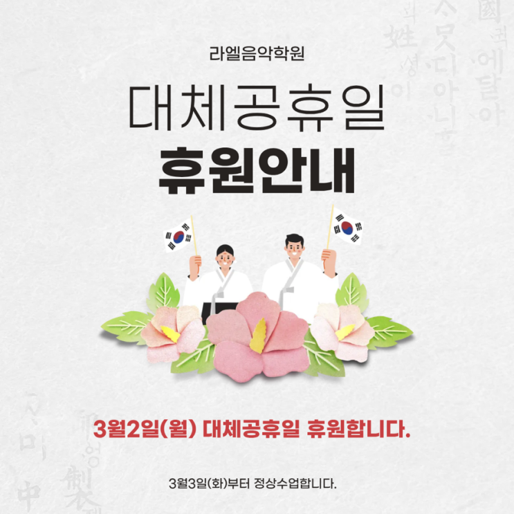 대체공휴일에는 쉬어갑니다(운정피아노학원,운정가람마을피아노학원,운정별하람마을피아노학원,라엘음악학원)