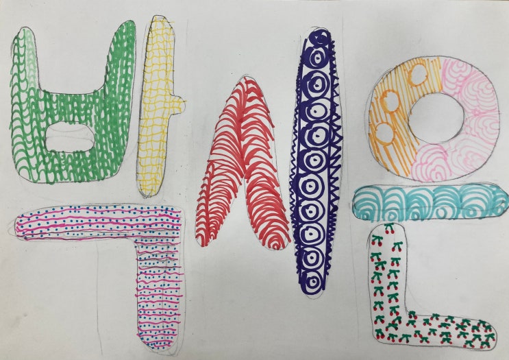 안녕하세요! 아이들의 창의력이 쑥쑥 자라나는 예본아르떼입니다. 오늘은 우리 아이들이 가장 친근하게 느끼는 단어, 바로 자신의 '이름'을 활용해 멋진 예술 작품을 만들어보는 시간을 가졌습니다. 이름 이니셜 속에 정성 가득한 패턴을 채워 넣은 '이니셜 젠탱글' 수업 현장을 공개합니다! 세상에 하나뿐인 나만의 '이름 예술' 단순히 이름을 쓰는 것을 넘어, 글자의 형태 안에 자신만의 규칙과 색깔을 담아보았습니다. 글자 속의 작은 세상: 'ㄱ', 'ㄴ', 'ㅅ' 등 글자 의 빈 공간을 선, 점, 물결 등 다양한 패턴으로 채웠어요. 다채로운 색감의 조화: 사인펜과 색연필....... <img src="https://blogthumb.pstatic.net/MjAyNjAyMThfMTk5/MDAxNzcxMzkyMjQyNjY5.cHyehcIy6XWf32D13UEKQVHqGWWHMbMVhmlVHVu9tFog.1R0cy-jdlkOS8e4wheDvT5w4Ep0fNlsDvTPAVME3hh4g.JPEG/IMG_9435.jpeg?type=s3" />
