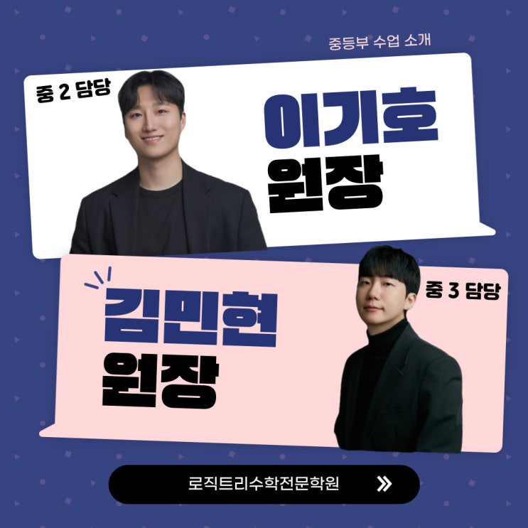 안녕하세요 옥빛중 수학학원 로직트리 수학전문학원 이기호 원장입니다! 새학기가 시작되며 많은 학부모님들께서 문의 주시고 계신데요! 이번 포스팅을 통해 로직트리 수학전문학원의 중등 시간표와 수업진행 및 프로그램을 소개드리고자 합니다. 중 2 담당 이기호 원장 옥빛중 수학학원 로직트리수학전문학원 현재 중등 2학년 반은 두 반으로 진행됩니다. 월수금 17:00~19:00 화목금 17:00~19:00 금요일 또는 토요일에 주간테스트 및 클리닉을 진행합니다. 중3담당 김민현 원장 옥빛중 수학학원 로직트리 수학전문학원 현재 중등 3학년 반은 두 반으로 진행됩니다. 월수금 17:00~19:00 화목금 17:00~19:00 월수금반은 선행반, 화목금반은 현행집....... <img src="https://blogthumb.pstatic.net/MjAyNjAzMDVfMTgx/MDAxNzcyNjk2NzI5OTM2.0Vf3tQJb6fzv6p10Nv4SXIfj43TDNLJfPkl-TL-CUjIg.uHjHww5Kzw50TLIEtyUyrpX39KZ9NlXiOyldoUhjmBsg.JPEG/001.jpg?type=s3" />