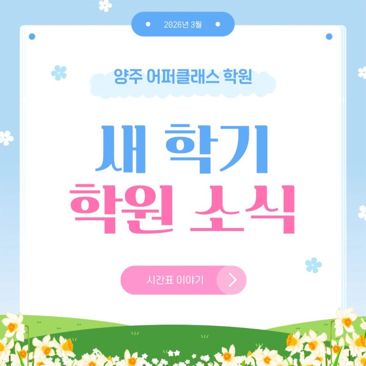 안녕하세요! 치열한 입시 현장에서 학생들의 성장과 성공적인 대학 입시를 위해 끊임없이 연구하고 고민하는 어퍼클래스 학원입니다. 어퍼클래스 학원은 양주 덕정 지역에서 15년 동안 학생들의 입시를 지도해 오며 많은 학부모님들께 꾸준한 추천을 받아온 입시 전문 학원입니다. 덕정학원, 덕정고학원, 덕계고학원, 덕정중학원, 고암중학원, 희천중학원 등을 찾는 분들께 신뢰받는 덕정 지역 대표 입시 학원으로, 그만큼 입시에 진심으로 임하고 있습니다. 새 학기가 시작되면서 저희 어퍼클래스도 시간표를 새롭게 정비했습니다. 학년도 다양하고 분반도 많다 보니 솔직히 꽤 오랜 시간이 걸렸는데요 학교별 내신 범위와 학생 개개....... <img src="https://blogthumb.pstatic.net/MjAyNjAzMDZfMjgz/MDAxNzcyNzg1NTgyODY1.zAgIrx8yLkU11Z3pJmW2ogqfEssZ_y2RE5qU7lEUkG8g.bcVGHmGMoTQYY6E_dbdrNduOWuukKobiMbZjIABrilYg.JPEG/1.jpg?type=s3" />