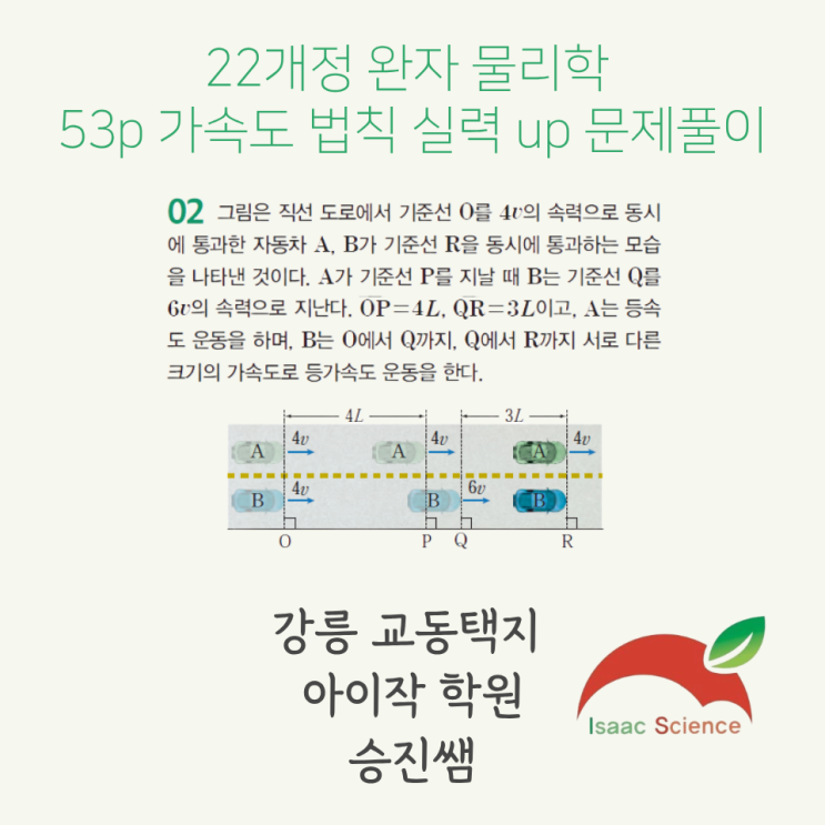 https://youtu.be/dyCNscVqGGY 안녕하세요 강릉 교동택지 아이작 학원 승진쌤입니다 :) 이번 영상에서는 22 개정 완자 물리학 53p 실력 up 등가속도 직선운동 문제를 풀어보겠습니다. 자세한 풀이는 영상을 참고해주세요. <img src="https://blogthumb.pstatic.net/MjAyNjAxMjZfMTIz/MDAxNzY5NDMwMzM4MTgx.7tFTzHMGifAt8jsOPJVjPbxmP5qSephNyr3zzi8E3Ewg.gWjTrqThhIEnawNo4HGA5v2XtZR_0a-TwZTeLx5A9iQg.PNG/%C1%A6%B8%F1%C0%BB_%C0%D4%B7%C2%C7%D8%C1%D6%BC%BC%BF%E4._%281%29.png?type=s3" />