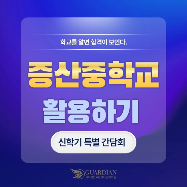 입시는 멀리 있지 않습니다. 지금 다니는 학교를 얼마나 잘 알고, 어떻게 활용하느냐가 출발점입니다. 같은 학교, 같은 수업을 듣더라도 결과는 다릅니다. 평가 기준을 정확히 이해하고, 학교가 제공하는 프로그램을 제대로 활용하는 학생이 결국 원하는 고등학교에 진학합니다. 학교를 아는 것, 그것이 입시의 가장 기본입니다. 이번 간담회에서는 증산중학교를 중심으로, 3년간 무엇을 어떻게 준비해야 하는지 구체적으로 안내해 드립니다. 일시 1월 30일(금) 오전 11시 장소 DMC가디언영어학원 대상 증산중 학부모님 (입학 예정자, 재원생, 비재원생 모두 가능) 간담회 내용 Part 1에서는 증산중학교의 학교 특색 프로그램과 평가 시스템을 분....... <img src="https://blogthumb.pstatic.net/MjAyNjAxMjZfMTU2/MDAxNzY5NDM4MDkzNzI0.TUcnDSgpGcCueyvfZ0sNZmj5A5WiFZLX4bkJkaqsPSUg.DI_0CBB4q4Dd0VVfxKzo2IyojSdeB1HVHN5Ij892xZwg.JPEG/900%A3%DF1.jpg?type=s3" />