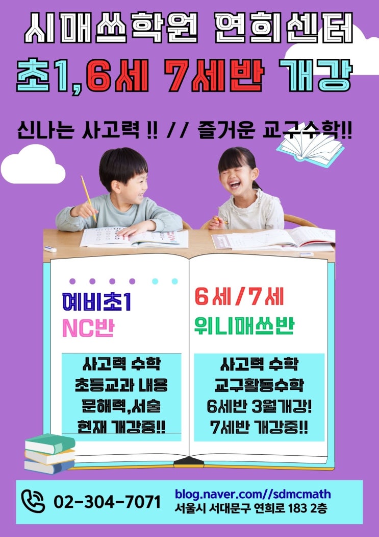 예비7세반과 예비초1반은 현재 개강중! 예비6세반은 테스트 및 상담후 대기중 3월개강! <img src="https://blogthumb.pstatic.net/MjAyNjAxMjdfMzcg/MDAxNzY5NTAxMTYzMjQy.9O9wGDvbIpFJVihUFS1OupMT7nFs_Eos6gEWp9TuVLQg.lze3yn8z-iIVhExa1_AdxlztoLsVVwbqR3xGiTB-jyEg.JPEG/%BD%C3%B8%C5%BE%B2_6%BC%BC%B9%DD.jpg?type=s3" />