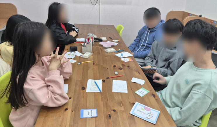 안녕하세요. 탕정영어학원 미래엔영어수학 최선학원입니다. 2-2주차 활동수업입니다. 2-2주차 Talk talk English (액티비티 영어 수업) 학습 주제 : MY TOP 3 (My Favorites) 아이들이 단순히 “좋아요”에서 끝나는 것이 아니라 이유까지 말해보는 연습을 했어요 배운 표현 My favorite ~ is ~. I like / I don’t like ~. Because it’s fun / cute / delicious / cool. What’s your favorite ~? 수업 활동 ✔ 최애 월드컵 (A vs B 선택 후 이유 말하기) “I choose pizza because it’s delicious!” ✔ 카드 뽑고 말하기 (랜덤 주제 발표) ✔ TOP3 발표 “My favorite 3 things” My favorite를 당당하게 말....... <img src="https://blogthumb.pstatic.net/MjAyNjAyMThfMjUx/MDAxNzcxNDIzNDE5NjQw.AeEiD80lY0YVknif1O6qv6QjpQuwpoB0x9E6VRLv-Vwg.6XtjOjoWr2fFI4YPrabBCwqfpobXG0jbM5oBd8XuTW8g.PNG/image.png?type=s3" />