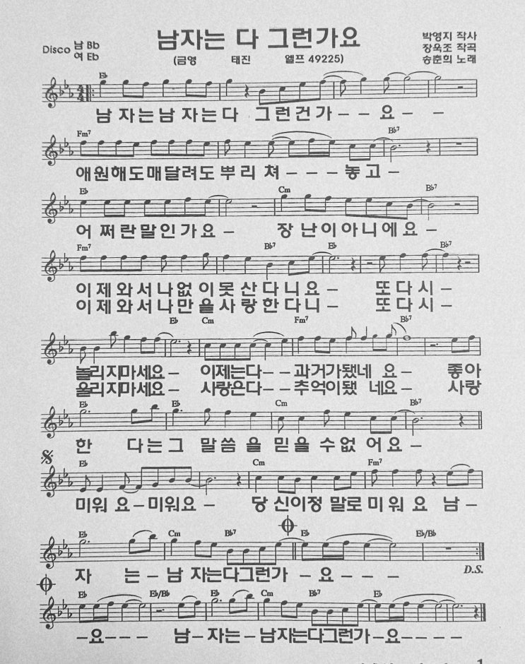 남자는 다 그런가요 송춘희(송이) 악보