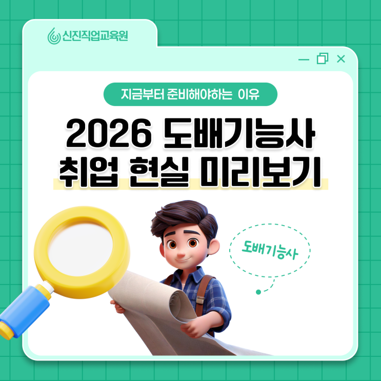 2026년을 앞두고 재취업을 고민하는 분들이 가장 많이 묻는 질문은 “지금 시작해도 괜찮을까?”입니다. 단순히 하루 벌어 하루 사는 일용직이 아니라, 내 숙련도에 따라 월급의 단위가 바뀌고 일의 주도권을 내가 쥐는 삶. 특히 인테리어 수요가 다시 살아나는 흐름 속에서 먼저 준비한 사람과 계속 고민만 한 사람의 차이는 2026년에 더욱 분명해질 가능성이 큽니다. 따라서, 오늘은 도배공 자격증이 다시 주목받는 그 이유, 그리고 도배기능사 취업을 목표로 한다면 어떤 준비가 필요한지 지금부터 하나씩 살펴보도록 하겠습니다. ▼신진직업교육원, 어떤 교육기관인지 궁금하다면?▼ <홈페이지 바로 가기> [2026 도배기능사 시험] “언....... <img src="https://blogthumb.pstatic.net/MjAyNTEyMjZfMzkg/MDAxNzY2NzM0MTg0NzU0.d7oUQjPLwHvwRli_-AMd_1NbQKlMmbN9I_CXMdfIYvAg.PkAykV0uj45F5MsvPTWe1yRa2GHPAkgUIgqGEtV1F2gg.PNG/%B5%B5%B9%E8%28%B3%B2%C4%B3%29_%281%29.png?type=s3" />