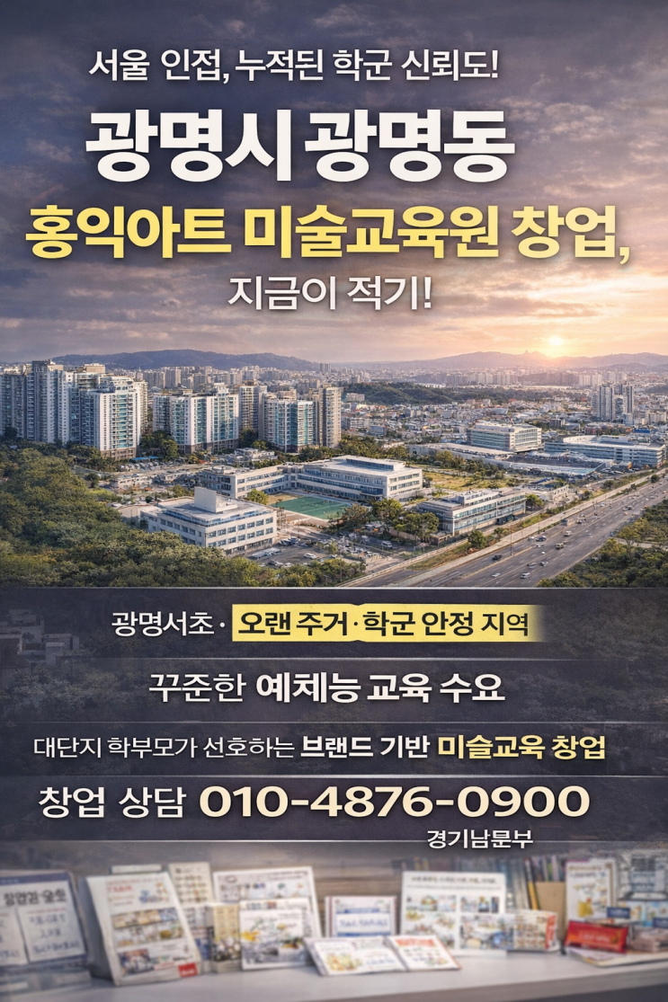 오랜 주거 안정성과 학군 신뢰 광명시 광명동광명서초·광일초 학군 중심 홍익아트 미술학원·미술교습소 창업, 지금이 적기입니다 AI시대 나만의 사업을 시작해보세요~