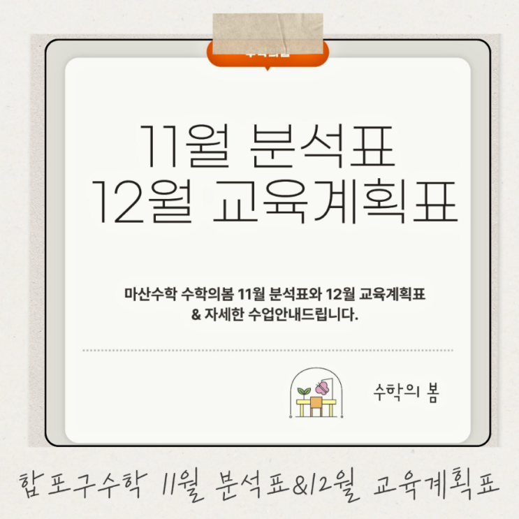 합포구수학 수학의봄 11월 분석표와 12월 교육계획표 & 수업안내드립니다.