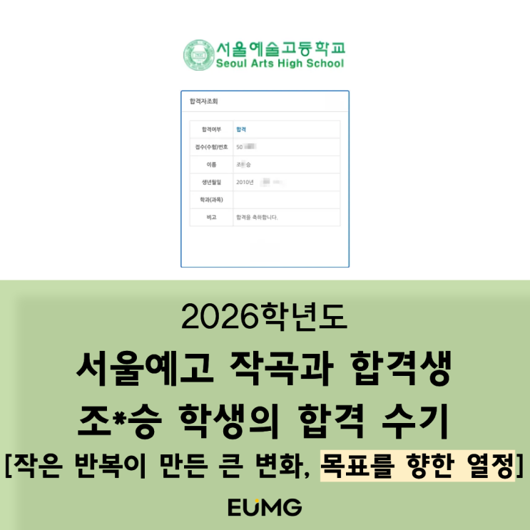 2026 서울예고 작곡과 합격생 합격 수기 / 끝까지 흔들리지 않는 연습의 힘 / 작곡학원 / 작곡과입시 / 작곡입시레슨 / 작곡과합격 / 예고작곡입시 / 음그작곡