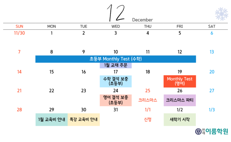 [연세이룸학원] 12월 학사일정