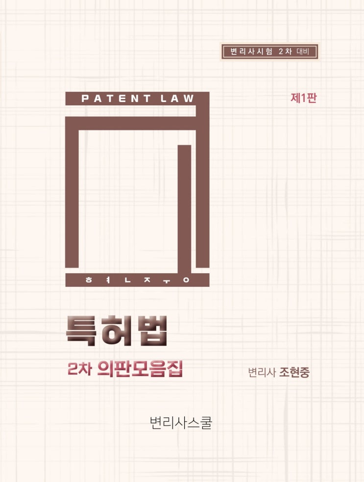 본 교재는 주요 조문과 판례를 정리한 서브집입니다. 본 교재에는 강의에서 사용하는 약어가 포함되어 있습니다. 약어에 대해 문의사항이 있으신 경우는 JHJ-GROUP.com으로 질문 주시면 안내 도와드리겠습니다. 항상 많은 관심 가져주시는 독자 여러분께 진심으로 감사드립니다. 최대한의 도움 드릴 수 있도록 끊임없이 노력하겠습니다. 2025년 11월 20일 변리사 조현중 올림 ebook 교보 ebook 스콘 국내 최초 현직 변리사가 운영 및 관리하는 유일한 전문 변리사학원 변리사스쿨 변리사스쿨 카카오톡채널 바로가기 문의연락: 02-566-9600(오전9시 - 오후6시) 변리사스쿨 홈페이지: www.patentschool.co.kr 변리사수험 커뮤니티: www.jhj-group.c....... <img src="https://blogthumb.pstatic.net/MjAyNTEyMDhfMzMg/MDAxNzY1MTY1OTg0OTIy.Ocf-TquEJocRZn5kZWi3uaiMbrC4rV1fnYAb1UCVUZYg.A2dD070rekarYa7Tr7lbTieUv4z0E9UuXknho8r6dNMg.JPEG/%C1%B6%C7%F6%C1%DF_%C6%AF%C7%E3%B9%FD2%C2%F7%C0%C7%C6%C7%B8%F0%C0%BD%C1%FD_2025_%C7%A5%C1%F6-1500.jpg?type=s3" />