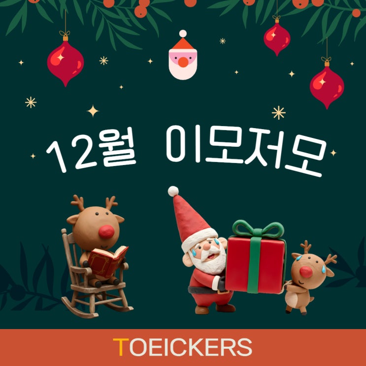 토 하 !! ✨ 안녕하세요 토커지기 입니다 본격적인 겨울이 시작된 12월, 2025년을 마무리하며 토익커스의 열정도 더욱 불타오르고 있습니다 한 해의 마지막 달을 보내며, 새로운 목표를 향한 여러분의 노력을 끝까지 응원합니다! 12월 수업일정 [개강] 12월 03일 (수) [종강] 12월 31일 (수) [모의고사] 12월 05일 (금) 12월 26일 (금) [토익정기시험] 12월 07일 (일) 12월 28일 (일) 이번 달에도 실전 모의고사가 2회 ! 시험 직전 감각을 완벽하게 끌어올릴 수 있는 소중한 기회 놓치지 말고 모두 참여해주세요 12월 토익커스 개강안내에 대해 더 자세히 알고 싶다면? https://blog.naver........ <img src="https://blogthumb.pstatic.net/MjAyNTEyMDVfMTc0/MDAxNzY0OTI4NTM4Mzgw.6C5woKBNOrG3t44xafpz8Ibj_CPKGu6ayTo7QruZatIg.VeQahmx556HCTKM6aXgtQ7DbaWSC-vx1DObRISfe1Mog.JPEG/%C1%F8%C1%D6%C5%E4%C0%CD%C7%D0%BF%F812%BF%F9%C0%CC%B8%F0%C0%FA%B8%F0.jpg?type=s3" />